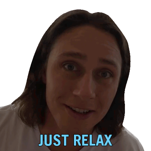 Michael Downie looks directly at the camera and calmly says "Just Relax" to encourage tranquility.