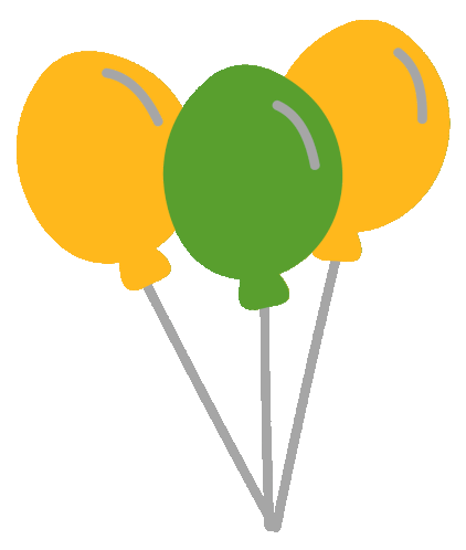 Three festive balloons, two yellow and one green, gently sway, perfect for celebrating Kaid's birthday.