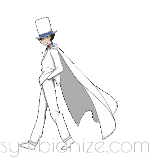Kaito Kid 1412, the phantom thief, stands in his iconic white suit and cape in this animated sticker.
