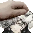 Kakania from Reverse 1999, an animated illustration of Isolde held by a hand, featuring subtle facial movements.