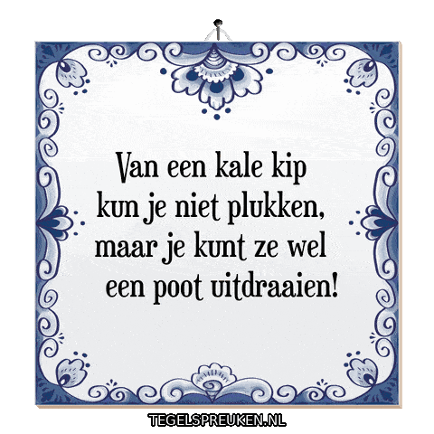 a sign that says van een kale kip kun je niet plukken maar je kunt ze wel een poot uitdraaien