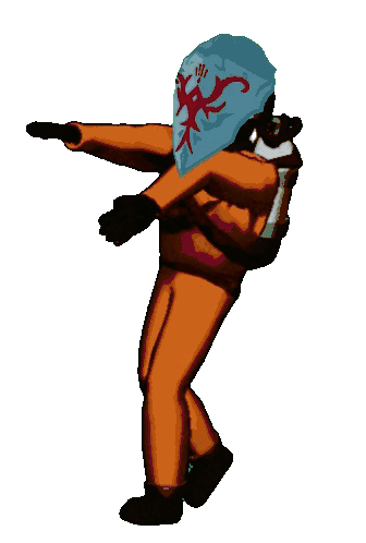 a man in an orange suit is dancing with a mask on his head that says mvp