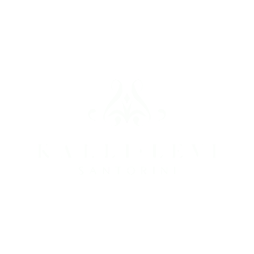 The elegant Kalli Levi Santorini brand logo, featuring a stylized emblem and text, subtly fades into view.