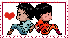 Kanetetsu, featuring Akira, Kaneda, and Tetsuo, in a charming pixel art sticker showing two characters back-to-back with a heart.