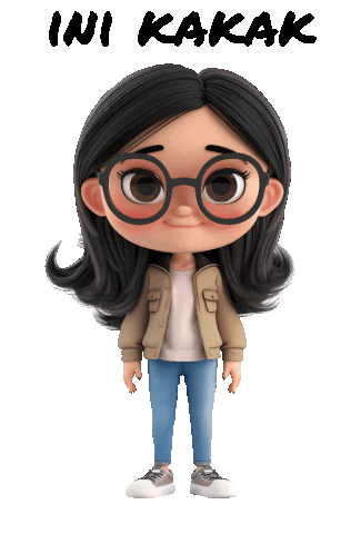 a cartoon girl wearing glasses and a jacket with the word ini kakak above her
