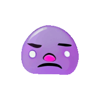 A cute, sad purple blob emoji sticker with a pink nose and white eyes, showing a melancholic expression.