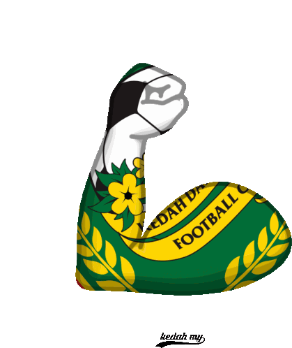 A flexing arm sticker featuring the Kedah Football Club logo, symbolizing strength and team spirit.