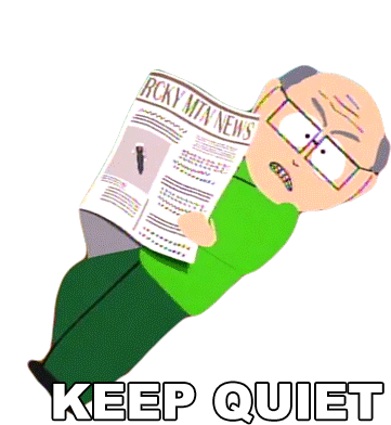 Herbert Garrison from South Park, looking annoyed while reading a newspaper, with the caption "KEEP QUIET".
