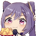 a cartoon girl is eating chicken nuggets .