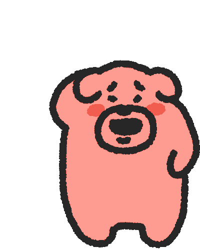 Ketakuma, the cute pink dog-bear character, expresses shyness and happiness with adorable blushes and smiles.