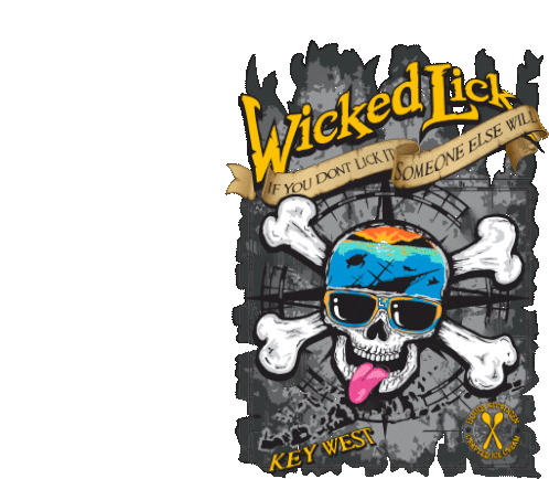 Wicked Lick Key West ice cream sticker featuring a cool skull with sunglasses and a playful tongue, promoting liquid nitrogen ice cream.