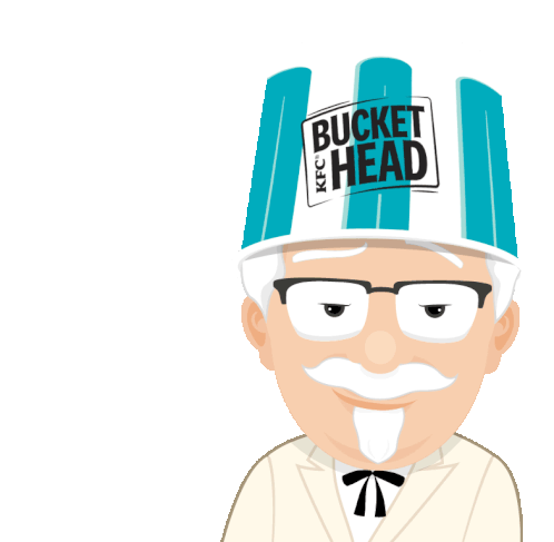 Colonel Sanders from KFC Australia, wearing a "Bucket Head" hat, smiles and rubs his hands. Perfect for cricket fans!