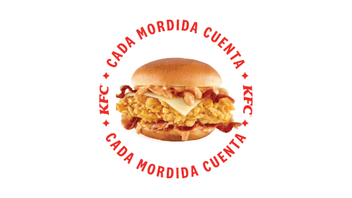 A delicious KFC Special Stage chicken sandwich with bacon and cheese, featuring the slogan 'Cada Mordida Cuenta' (Every Bite Counts).