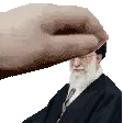 a hand is touching a man 's forehead with a hat on .