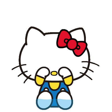a blue hello kitty with a red bow on her head