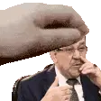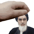 a hand is touching a man 's forehead with a beard .