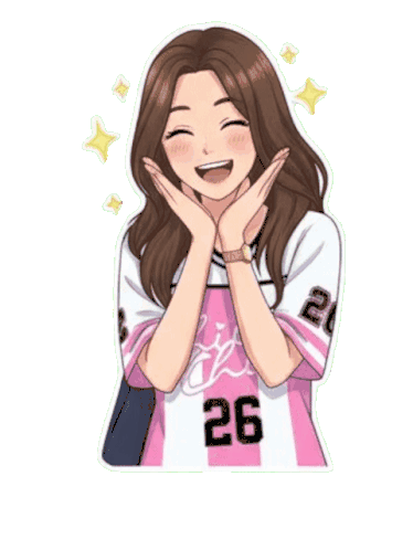a sticker of a girl wearing a pink shirt with the number 26 on it