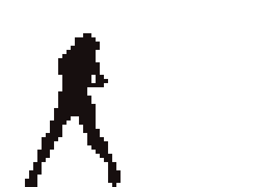 A pixelated silhouette performs a dynamic karate kick, showcasing martial arts action.