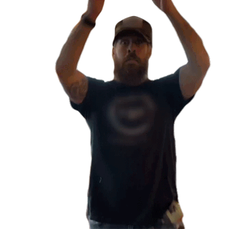 Zach Kale from 'Kicking You' raises his arms above his head, looking intensely at the camera.