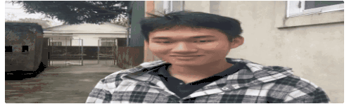 Kietacwy, a young man, makes a funny face then smiles charmingly, wearing a plaid jacket.