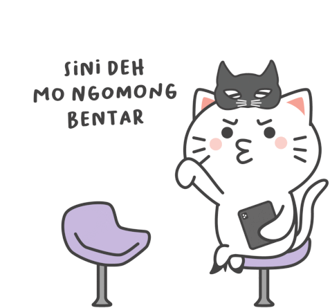 Kiki the Kikiapp cat, wearing a mask, sits on a stool and gestures, inviting someone to talk for a moment.