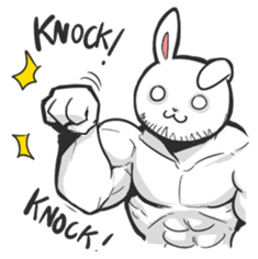 Kiki Pyonpyon, the muscular cartoon rabbit, flexes and says 'knock knock' in this strong and humorous sticker.