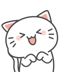 A cute white Kikicat from Kikiapp laughs happily with closed eyes and crossed paws, showing pure joy.