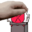 a close up of a person 's hand holding a red item .
