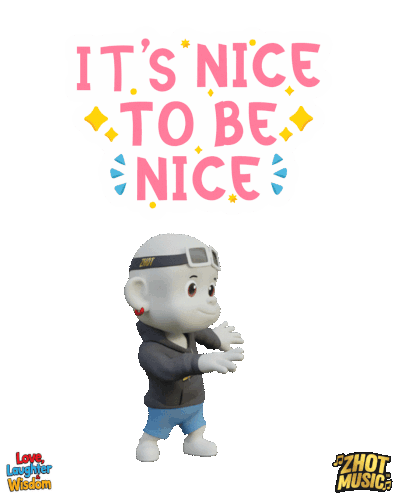 a cartoon character with the words it 's nice to be nice in the background
