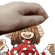 Kinoko Komori from My Hero Academia smiles while receiving a gentle headpat from a giant hand.