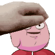 Kirby, the cartoon character, is shown with prominent feet, being pummeled by a hand in this animated sticker.