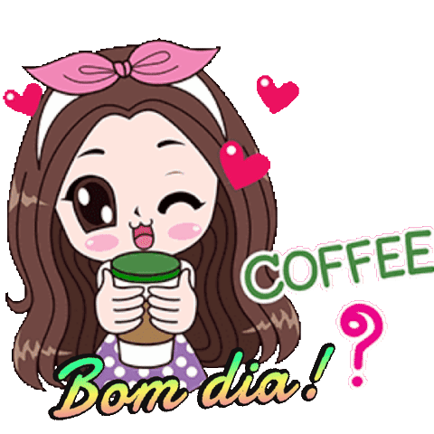 a cartoon girl is holding a cup of coffee with the words coffee bom dia on the bottom