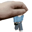 Animated pixel art sticker of a hand squishing the character Kitzial, who is a small person.