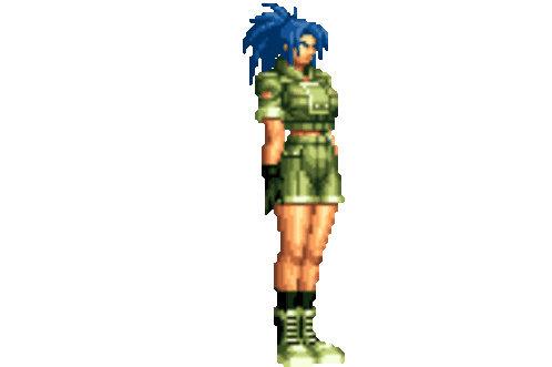 a pixel art illustration of a woman with blue hair