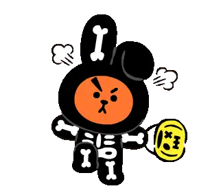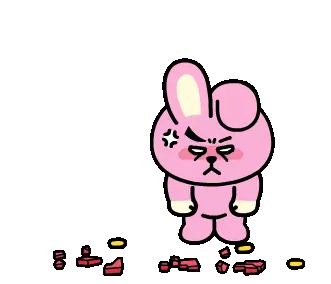 Koogimins Cooky, the pink rabbit character, gets frustrated and throws papers while sitting in an office chair, expressing anger.