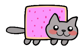 Iconic Nyan Cat sticker featuring the pixelated cat with a pop-tart body flying through space, leaving a rainbow trail.