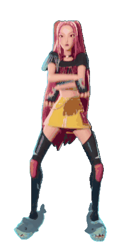 a cartoon girl with pink hair is wearing a black shirt that says frontier