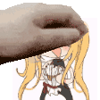 Kpring Pat, a cartoon girl with blonde hair, stands beside Sayu, a dog wearing a hat, in this charming sticker.
