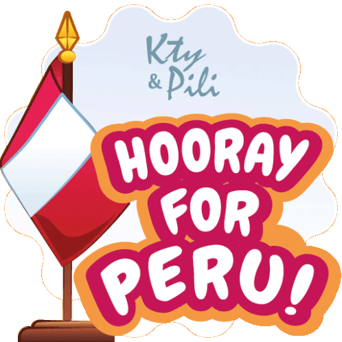 Kty & Pili celebrate Peru's Fiestas Patrias with a waving flag and 'Hooray for Peru!' message, perfect for national pride.