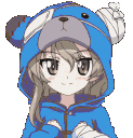 Kumapls, an anime girl in a blue bear hoodie, happily nods her head in agreement.