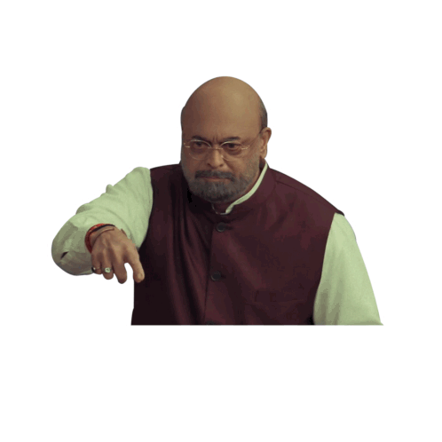 Amit Shah, an Indian politician, points while the text 'Kya Baat Kar Rahe Hai Aap?' (What are you talking about?) appears.