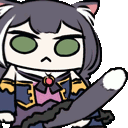 a cartoon of a cat holding a bat with a sword .