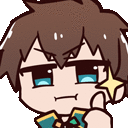 a cartoon boy with brown hair and blue eyes is holding a star in his hand and making a funny face .
