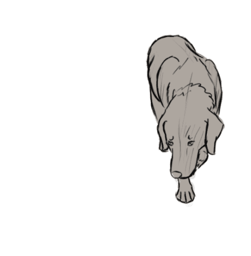 A cute, sketched Labrador dog sniffs the ground intently, moving its head in a curious manner. Perfect for dog lovers.