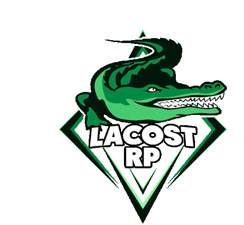 A vibrant green crocodile logo for Lacost RP, featuring a dynamic and colorful glitch effect that distorts and shifts the image.