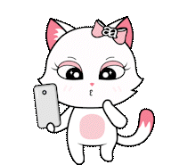 Ladymieu Gilaa, a cute cartoon cat, winks and blows a kiss while taking a sparkling selfie with her phone.