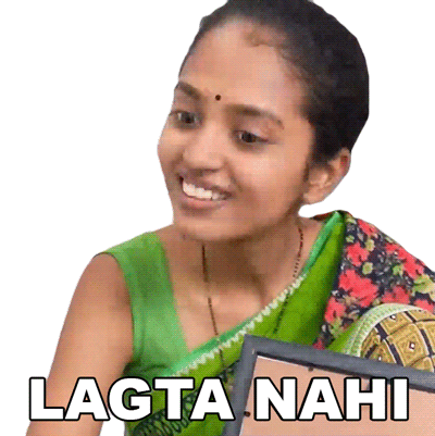Aparna Tandale smiles while holding a sign that reads 'Lagta Nahi' (Doesn't seem like it), expressing doubt or disbelief.