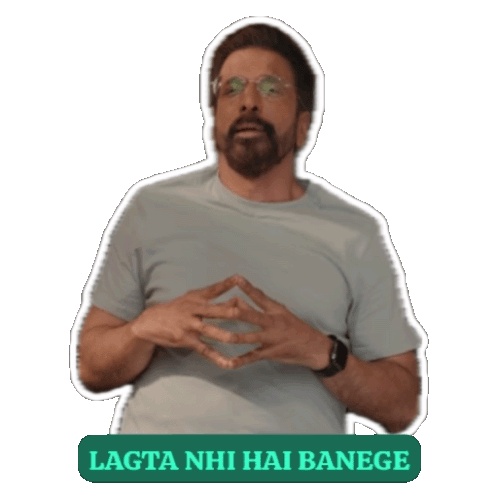 a man with glasses and a beard has a sticker that says " lagta nhi hai banege "