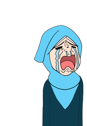 Lalaartwork's anime-style hijabi character is shown in an emotional state, shedding tears and sobbing intensely.