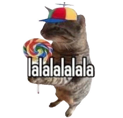 a cat wearing a hat is holding a lollipop and says lalalalala .
